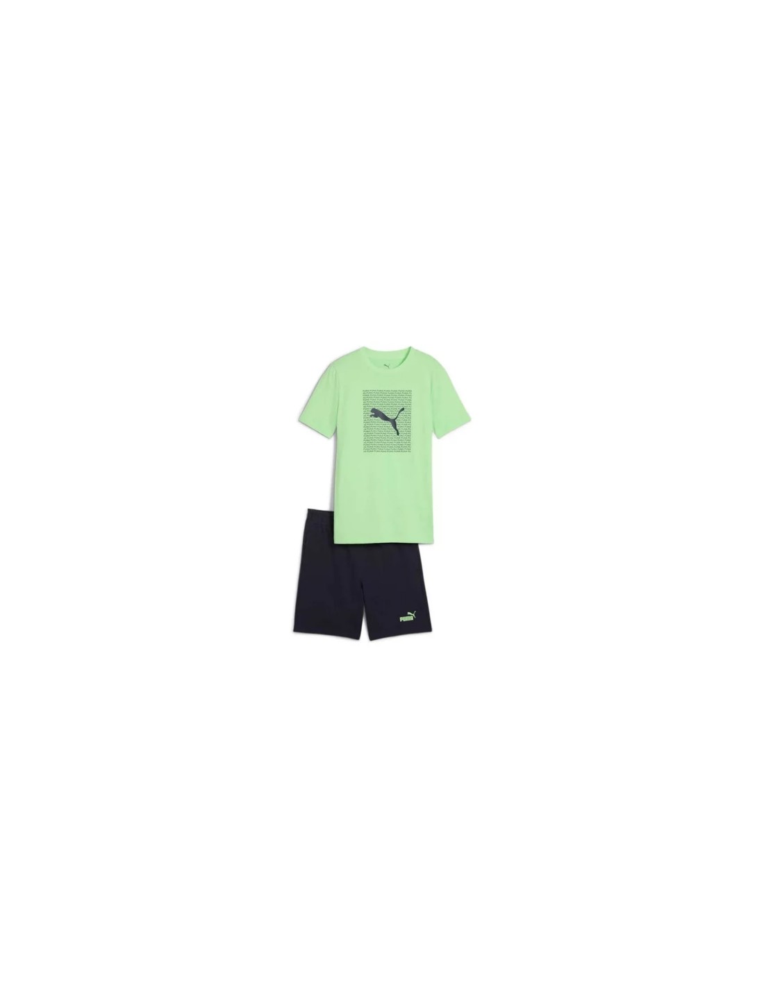 Viste a los jóvenes con un estilo deportivo y cómodo con el Conjunto Camiseta Verde + Bermuda Negra PUMA ESS LOGO LOB TEE AND SHORT SE.